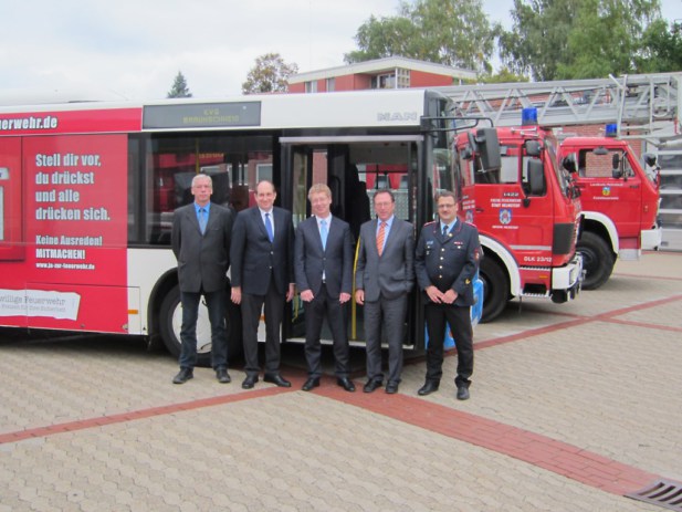 Ab sofort kämpfen der Landkreis Helmstedt und die Kraftverkehrsgesellschaft (KVG) mbH Braunschweig gemeinsam gegen sinkende Mitgliederzahlen bei den Freiwilligen Feuerwehren. Am 24. September 2013gaben Landrat Matthias Wunderling-Weilbier, Kreisbrandmeister Olaf Kapke und KVG-Geschäftsführer Axel Gierga auf dem Gelände der Feuerwehrtechnischen Zentrale Helmstedt den offiziellen Startschuss für den so genannten „Feuerwehr-Bus“. Dieser ist das neueste Element einer landesweiten Kampagne unter dem Motto „Ja zur Feuerwehr“.