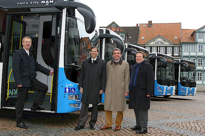 Und in Wolfenbüttel stellte die KVG nur wenige Stunden später auf dem Rathausplatz die neuen Busse für ihren Stadtverkehr dem Bürgermeister der Stadt, Thomas Pink, vor.