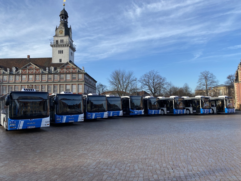 Die offizielle Indienststellung der neuen A23-Lion’s City Gelenkbusse fand am Donnerstag, den 19. Dezember 2019 auf dem Schlossplatz um 14:30 Uhr in Wolfenbüttel statt. Dort wurden die neuen Gelenkbusse der LNVG, den Gesellschaftern, dem Regionalverband und Ratsmitgliedern von Stadt und Landkreis vorgestellt. Axel Gierga, Geschäftsführer der KVG mbH Braunschweig, nahm die Fahrzeuge im Beisein von KVG Aufsichtsratsvorsitzendem Rolf Stratmann entgegen. Dies geschah durch eine symbolische Schlüsselübergabe seitens Thomas Flentge von der MAN Truck & Bus Deutschland GmbH. Die Präsentation diente weiter zur Besichtigung der Fahrzeuge und zur Information über die neuen Technologien und Innovationen.