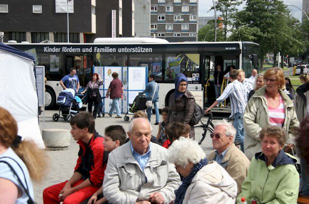 Gemeinsame Ferienprogramm-Aktion mit der Stadt Salzgitter am 19.07. auf dem Rathausvorplatz in Lebenstedt, KVG-Infostand zum Fahrplanwechsel
