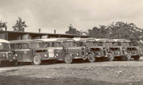 ...das war die tägliche Sorge der Betriebsleitung in den ersten Nachkriegsjahren. Das eigene Ersatzteillager war "versiegt". Anfangs konnte man sich noch mit Material von stillgelegten Fahrzeugen behelfen, doch diese Quelle versiegte schnell. Reifenpannen wurden zum täglichen Übel. Immer wieder wurde "geflickt", was längst ausgedient hatte. Schließlich war auch "flicken" nicht mehr möglich, Wagen für Wagen fiel aus.