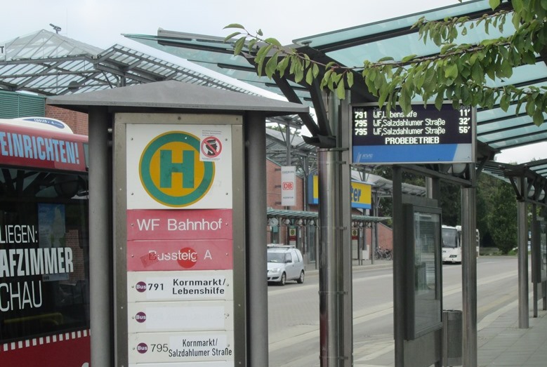 Anfang September 2014 nimmt die KVG an der Haltestelle „Bahnhof" in Wolfenbüttel die ersten beiden Dynamischen Fahrgastinformationsanzeiger (DFI) in Betrieb. Die Anzeiger informieren den Fahrgast darüber, wann der Bus wirklich kommt und nicht nur wann er nach Fahrplan kommen soll.
